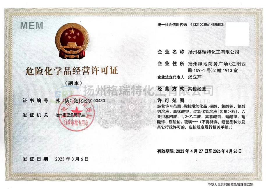 揚州格瑞特化工有限公司生產工廠坐落于江蘇省海安縣胡集工業園區和海安精細化工工業園。總公司成立于1999年,是集科、工、貿為一體的現代化生產型企業。專業致力于水處理劑、紡織印染助劑、化纖油劑等產品的科研、開發、生產和銷售??偣菊嫉孛娣e40000m,建有現代化標準廠房,擁有先進的生產設備。年產各類水處理劑系列產品12000噸,紡織印染助劑5000噸,產品12個系列40多個品種??偣咀⒅丶夹g投入,設立產品研發中心和環保運營中心,聘請了多位專家為公司技術顧問,并和多個重點院校建立了長期技術合作開發關系,是南通大學、江南大學、南京工業大學產學研基地。